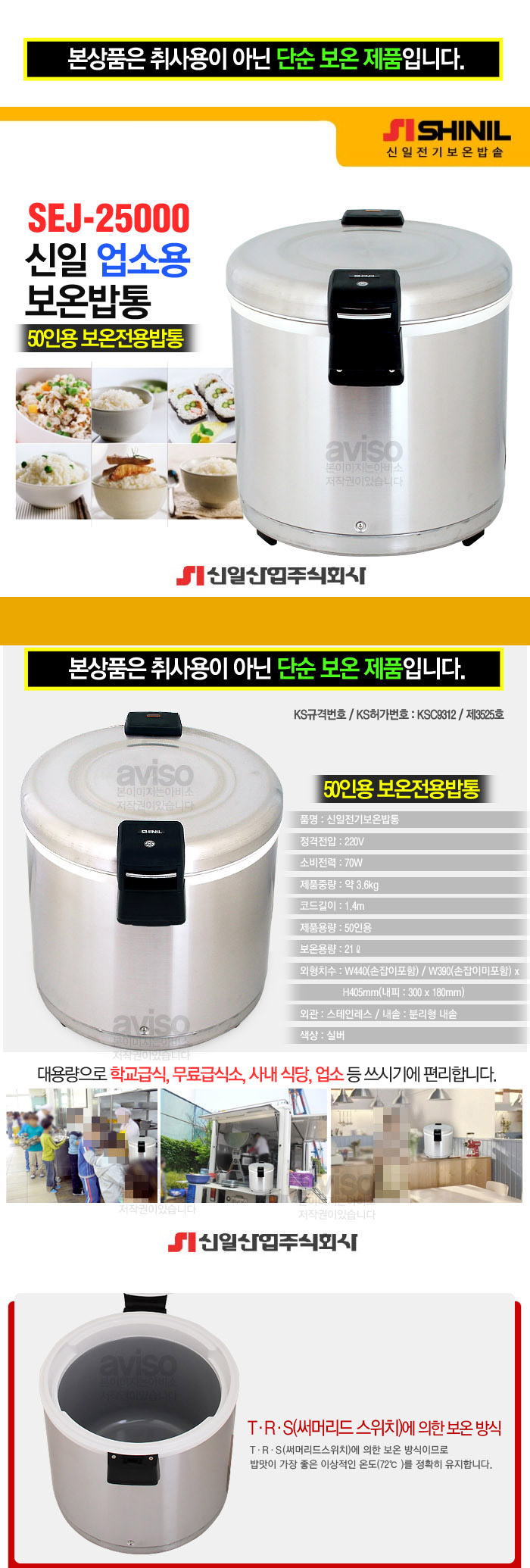 신일 업소용 대용량 밥통 SEJ-25000/50인용