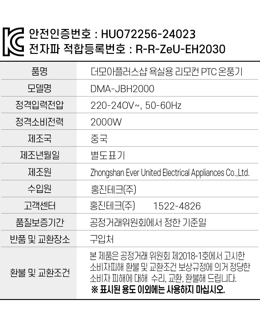 더모아 욕실용 온풍기 DMA-JBH2000